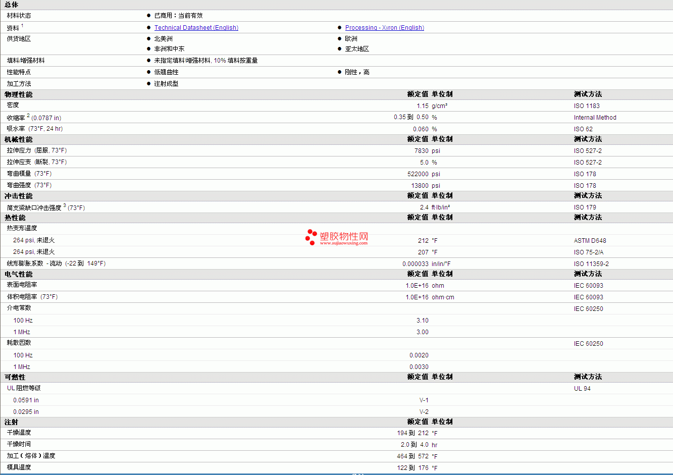 | 机械性能 | 额定值 | 单位制 | 测试方法 |