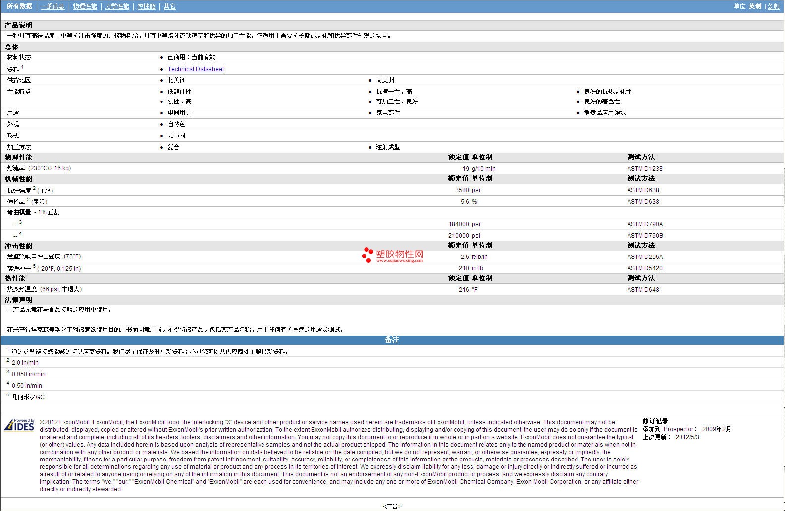 更多ExxonMobil AES PP7694E2 物性表报价,图片、材质证明、UL黄卡、物质安全资料表(MSDS)等,最新行情报价等可来电咨询赵先生:13424755533或QQ: 27660005