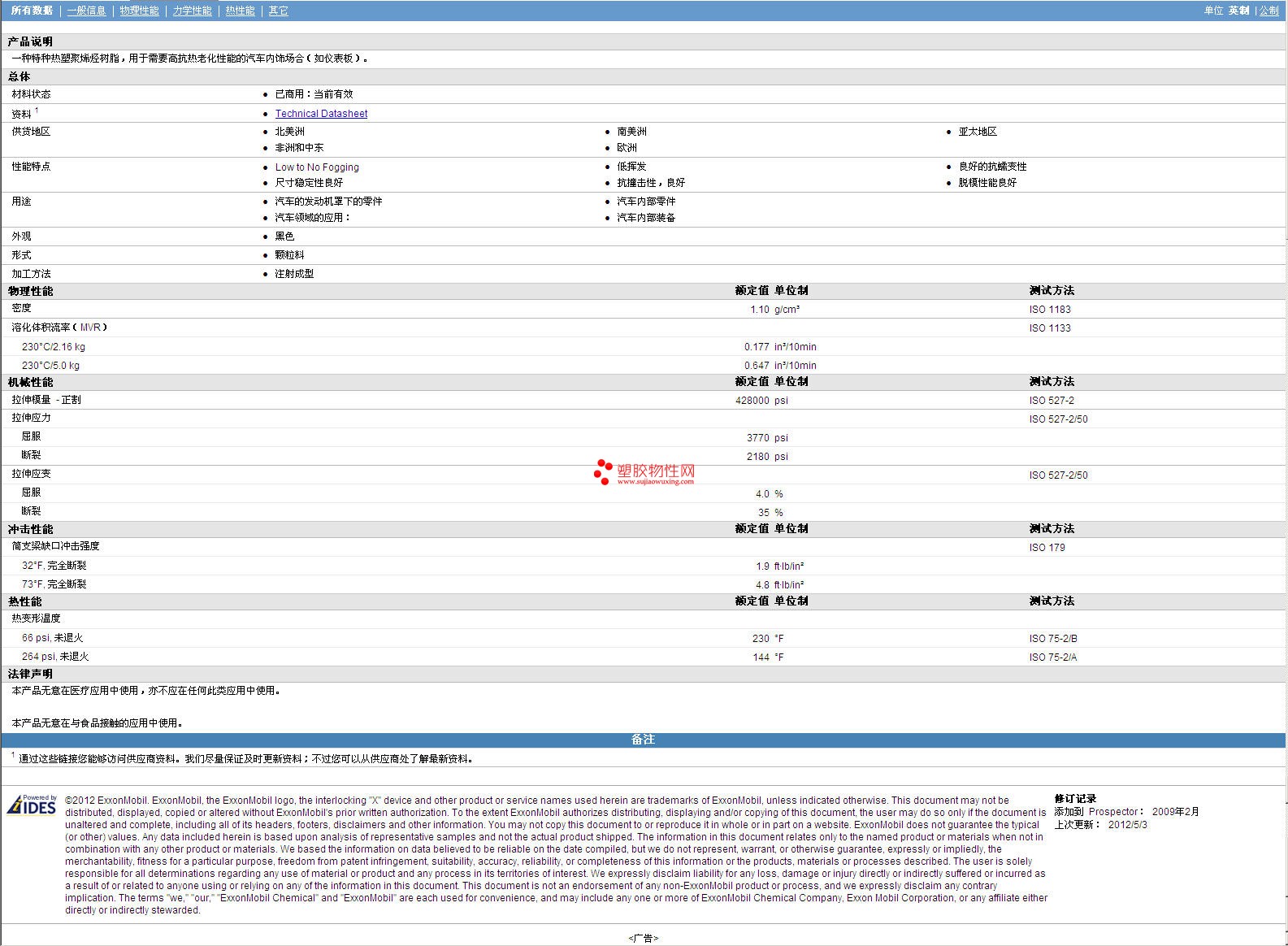 Exxtral AES Performance Polyolefin CMN303详情见附件