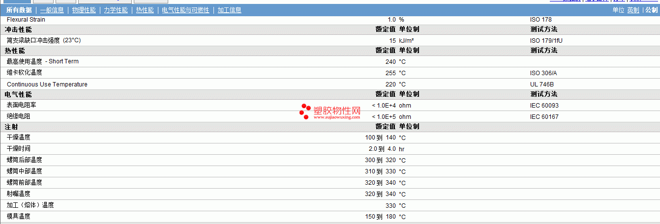 | 拉伸应变 (屈服) | 1.0 | % | ISO 527-2 |
