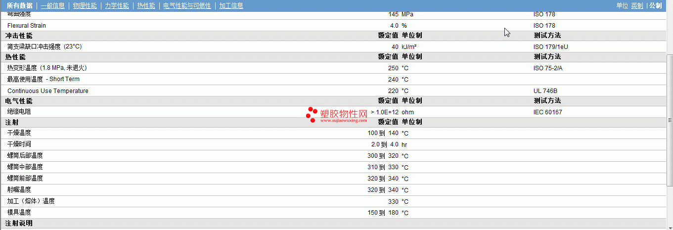 | 机械性能 | 额定值 | 单位制 | 测试方法 |