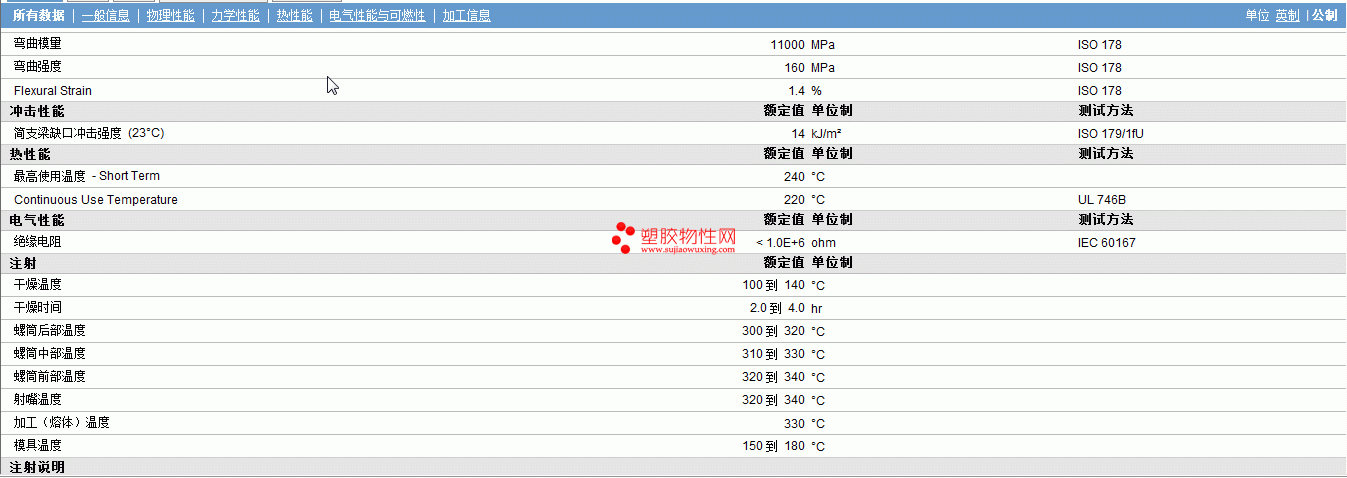 | 机械性能 | 额定值 | 单位制 | 测试方法 |
