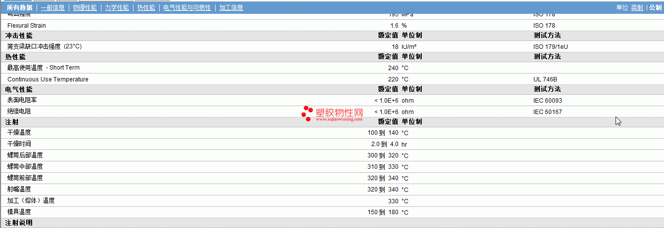 | 机械性能 | 额定值 | 单位制 | 测试方法 |