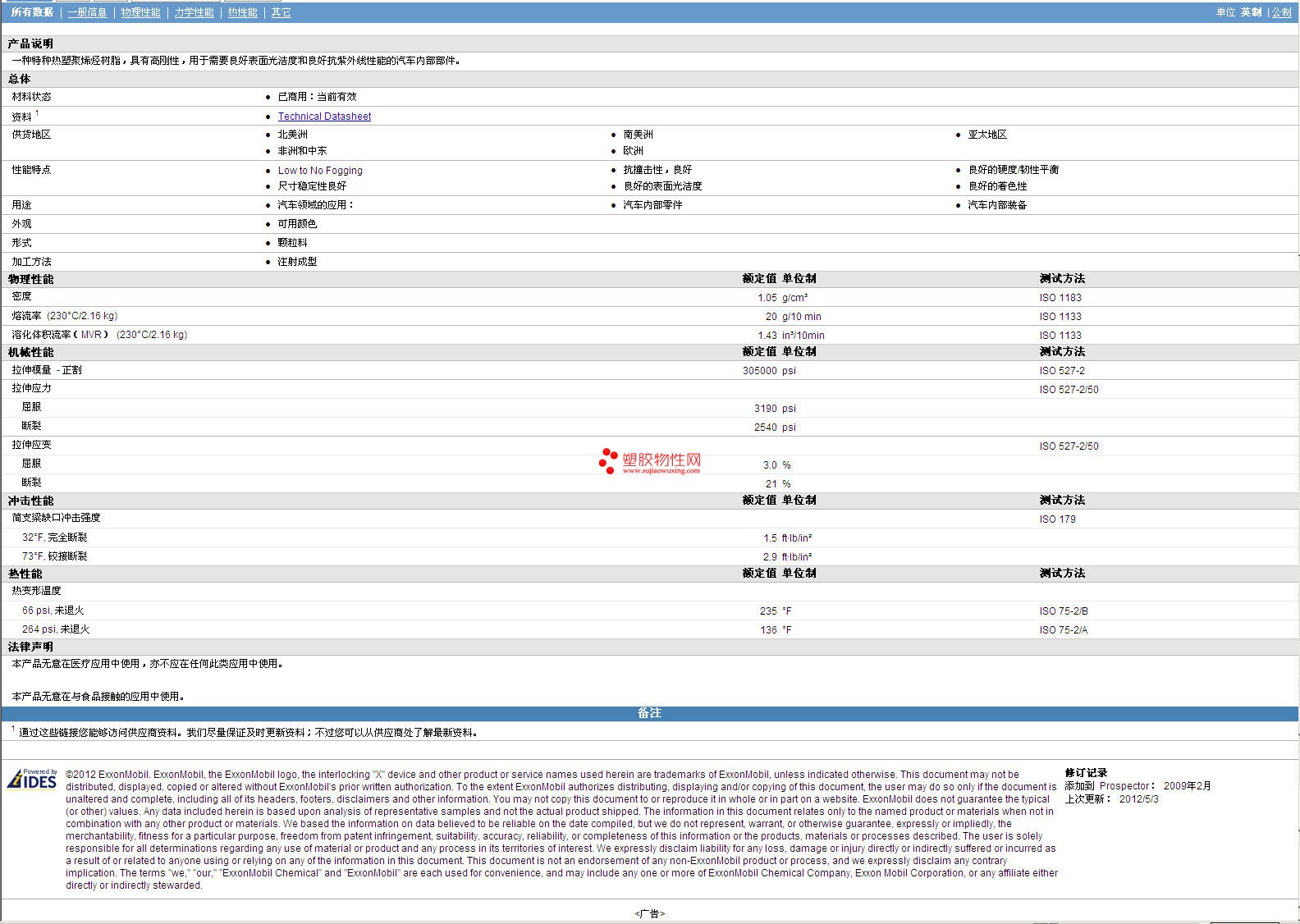 更多Exxtral AES Performance Polyolefin CMV205 物性表报价,图片、材质证明、UL黄卡、物质安全资料表(MSDS)等可来电咨询赵先生:13424755533或QQ: 27660005