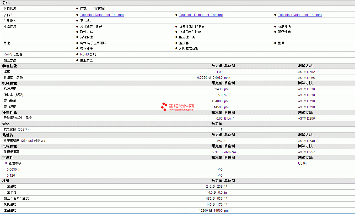 Yuyao PPE PPO PX9406-701 物性表 如图所示
