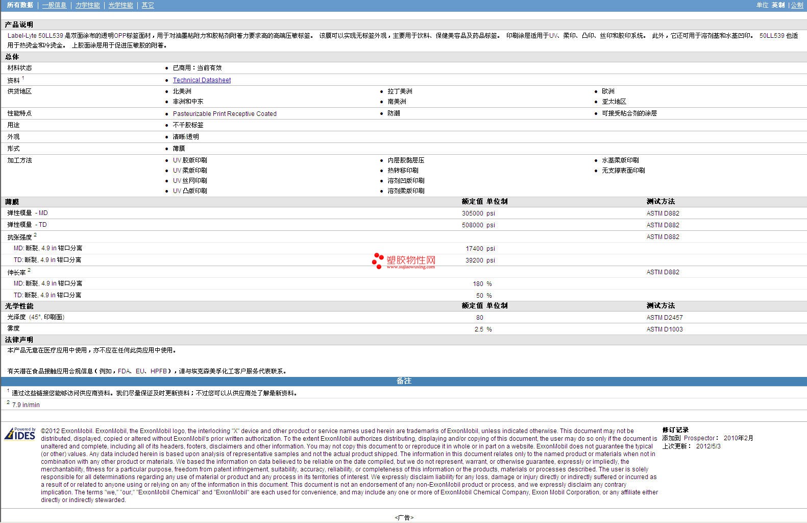 如需了解Label-Lyte AES 50LL539 物性表更多详情,ROHS(SGS)报告、物质安全资料表(MSDS)、材质证明、UL黄卡等,最新行情报价等可来电咨询:赵先生:13424755533或QQ: 27660005