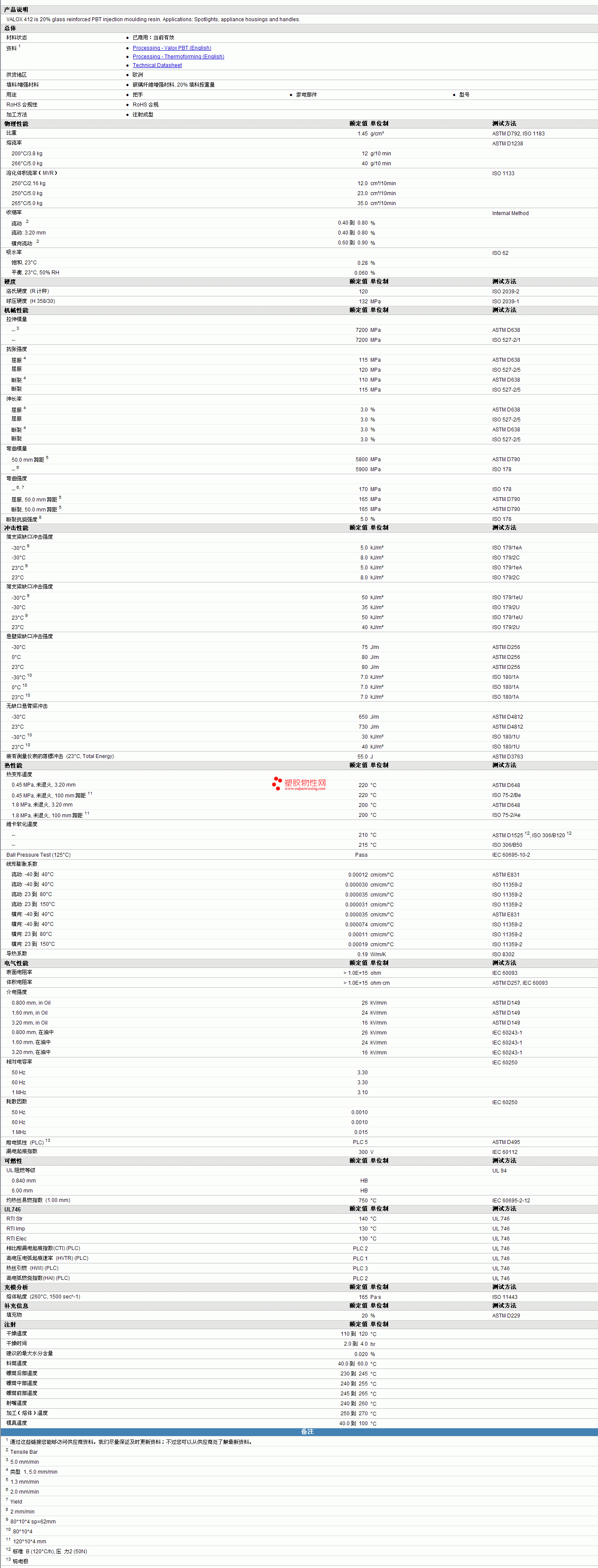 VALOX pbt 412 Resin物性表 见图片