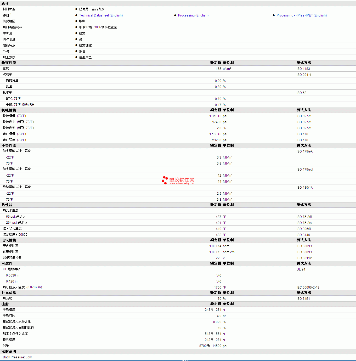 如需了解4PET PET 9L22630 WFR1 BK物性表更多详情,ROHS(SGS)报告、物质安全资料表(MSDS)、材质证明、UL黄卡等,最新行情报价等可来电咨询:赵先生:13424755533。或QQ:27660005