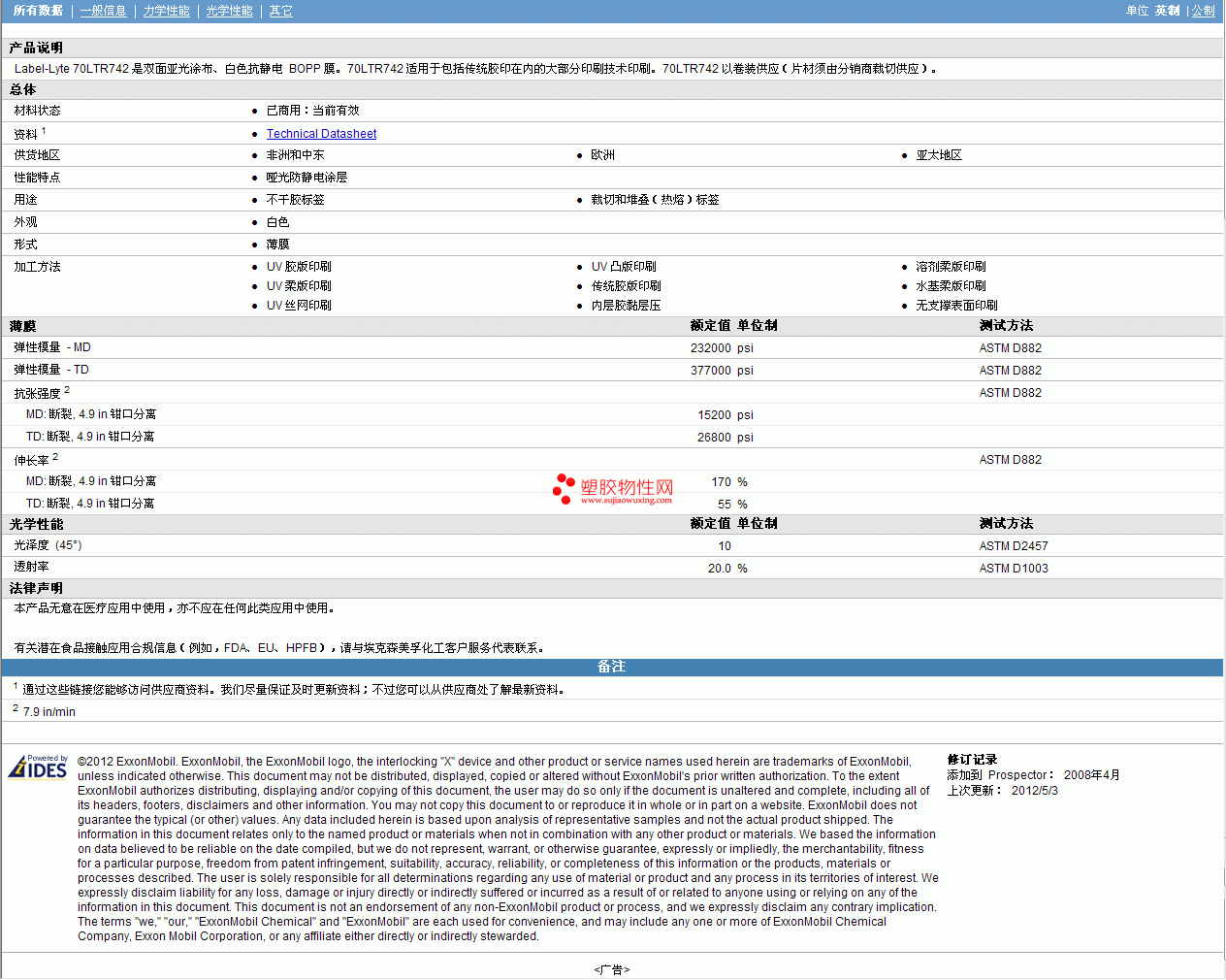 更多Label-Lyte AES 70LTR742 物性表报价,图片、材质证明、UL黄卡、物质安全资料表(MSDS)等,最新行情报价等可来电咨询赵先生:13424755533 或QQ:27660005
