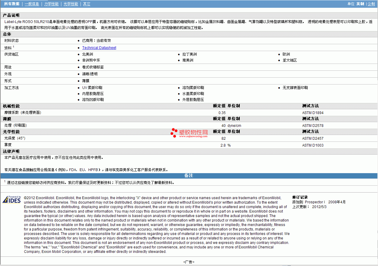 如需了解Label-Lyte AES ROSO 50LR210 物性表更多详情,ROHS(SGS)报告、物质安全资料表(MSDS)、材质证明、UL黄卡等,最新行情报价等可来电咨询:赵先生:13424755533 或QQ:27660005