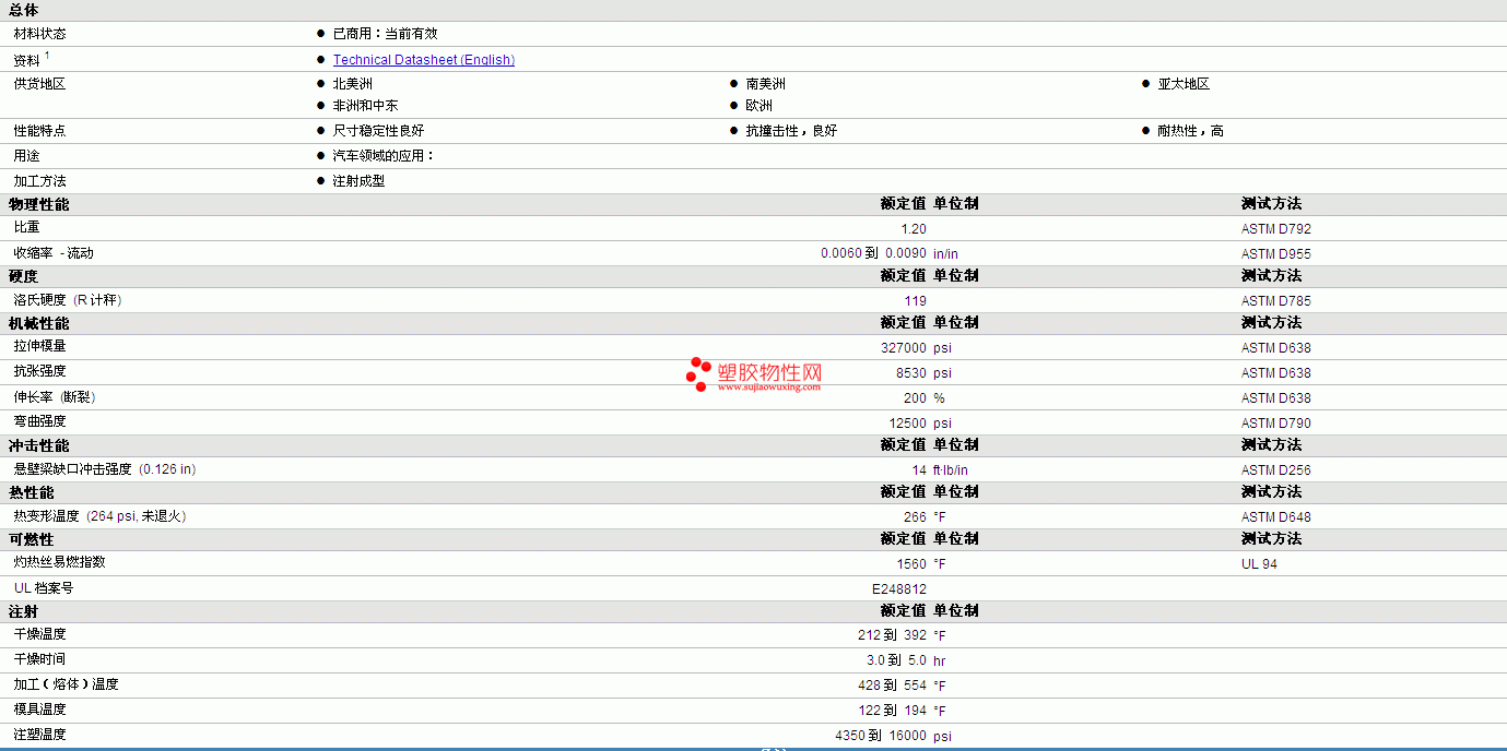 其他工程塑料物性表