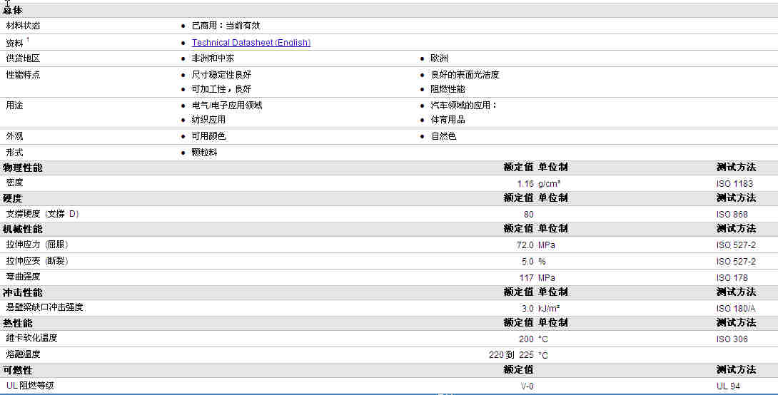 | 拉伸应力 (屈服) | 72.0 | MPa | ISO 527-2 |