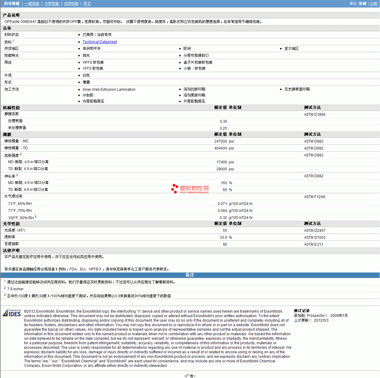 更多Oppalyte AES 30MD447 物性表报价,图片、材质证明、UL黄卡、物质安全资料表(MSDS)等,最新行情报价等可来电咨询赵先生:13424755533 或QQ:27660005