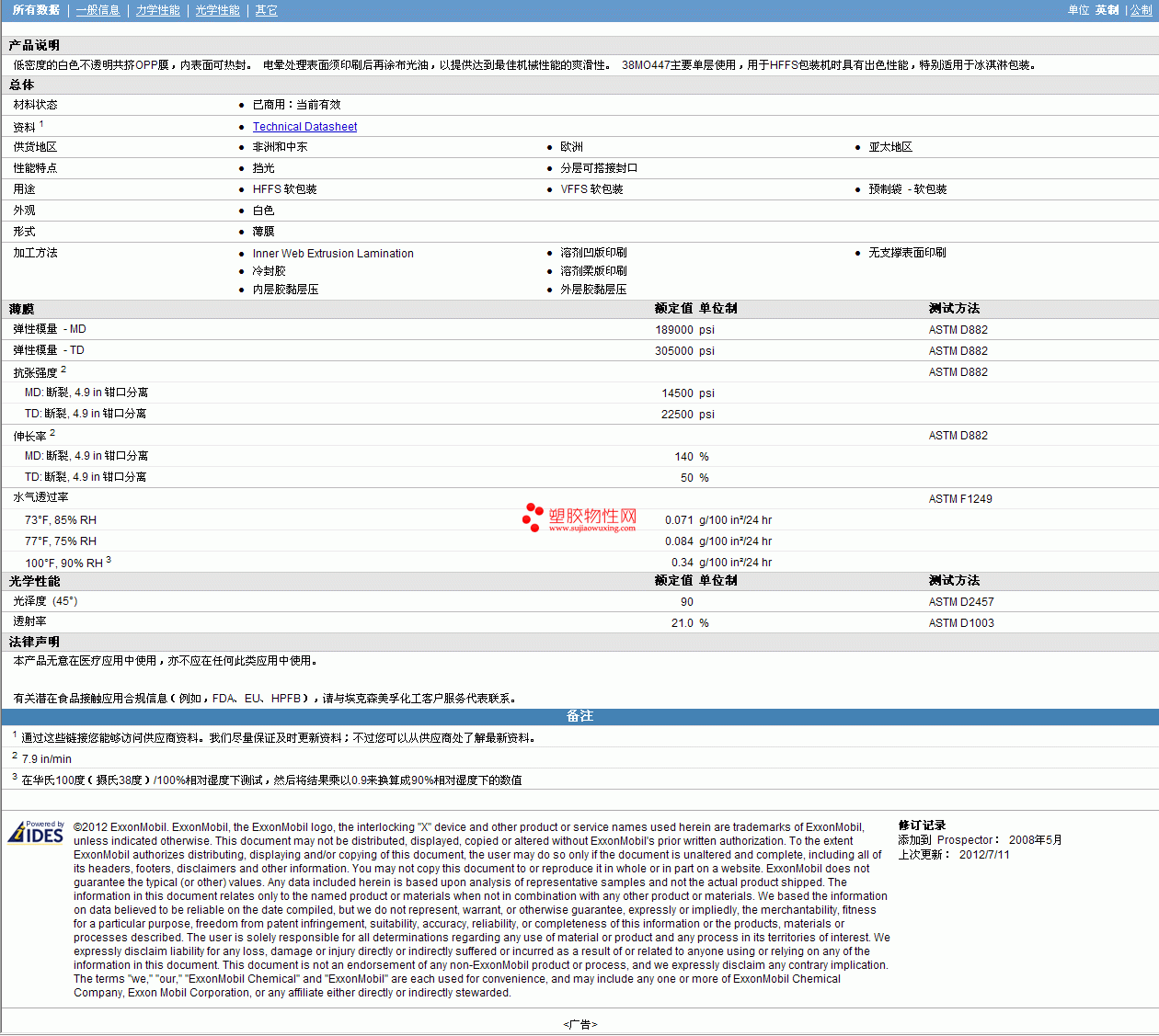 Oppalyte AES 38MO447 物性表