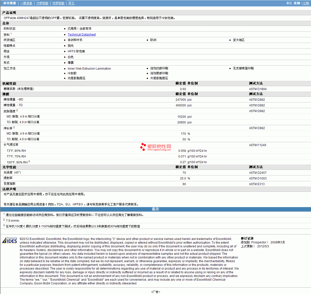 更多Oppalyte AES 40MH247 物性表报价,图片、材质证明、UL黄卡、物质安全资料表(MSDS)等可来电咨询赵先生:13424755533 或QQ:27660005