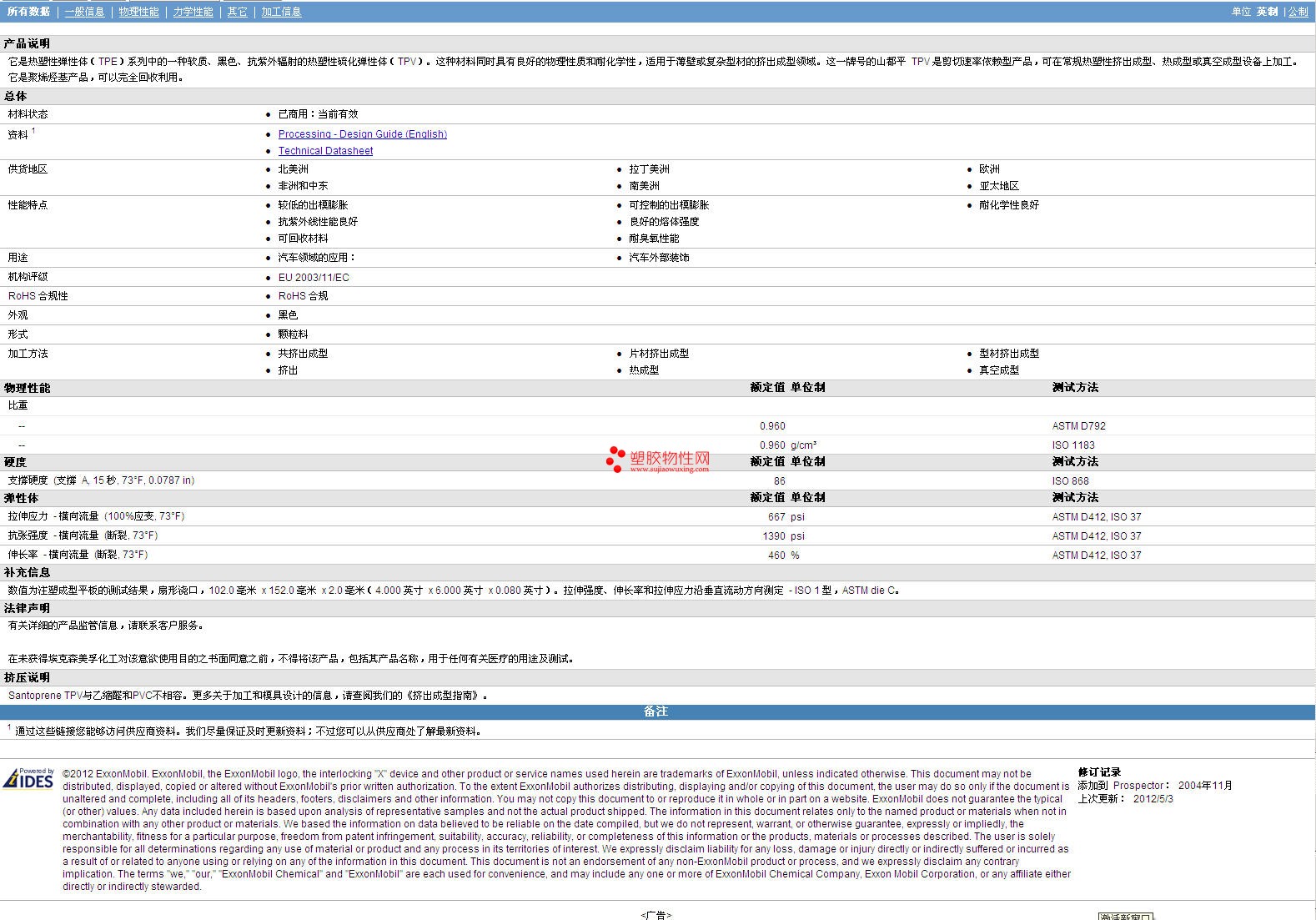 更多Santoprene AES 121-80W175 物性表报价,图片、材质证明、UL黄卡、物质安全资料表(MSDS)等可来电咨询赵先生:13424755533或QQ: 27660005