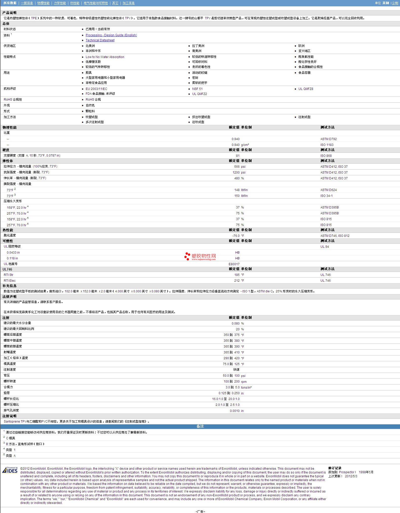 更多Santoprene AES 8271-75 物性表报价,图片、材质证明、UL黄卡、物质安全资料表(MSDS)等可来电咨询赵先生:13424755533或QQ: 27660005