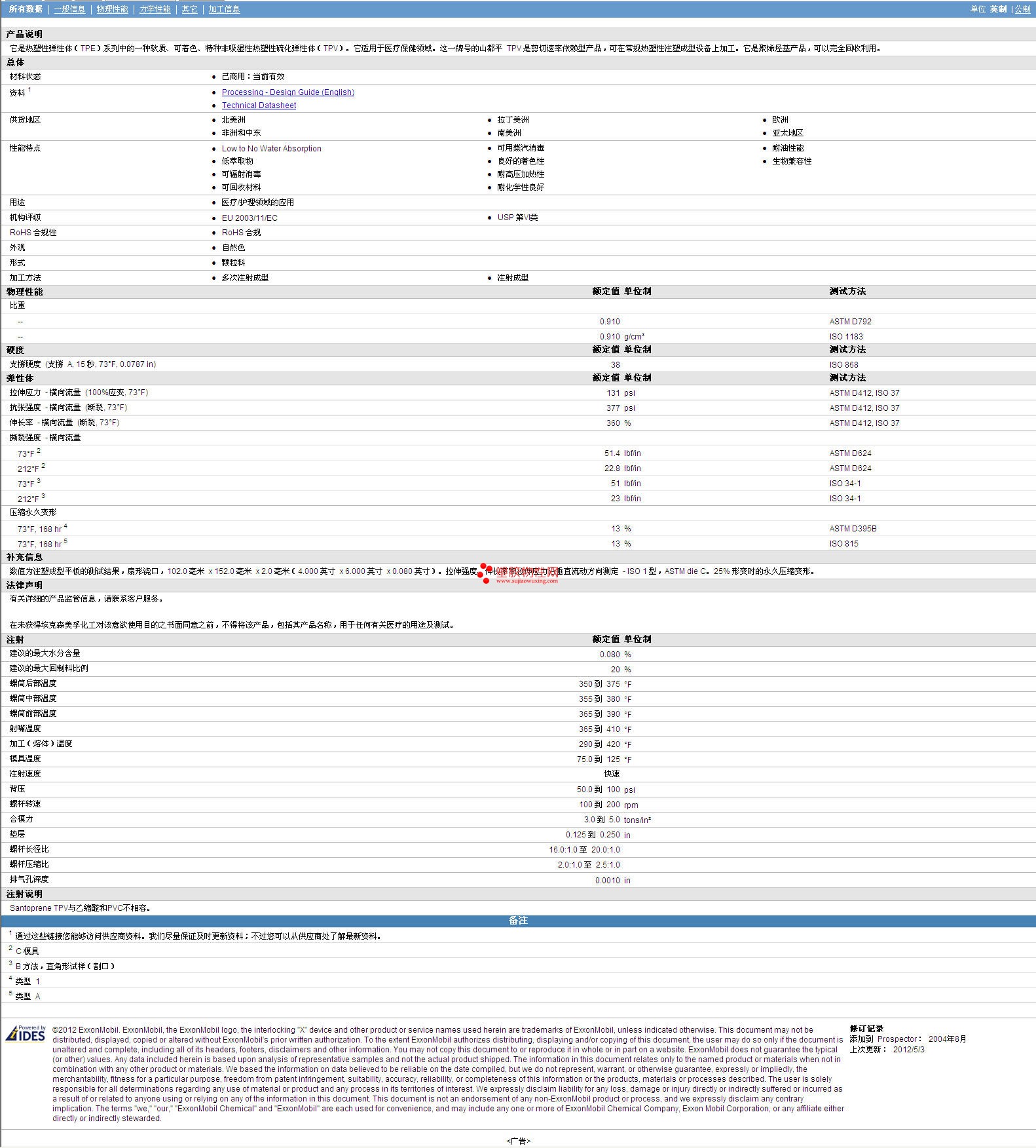 需了解Santoprene AES 8281-35MED 物性表更多详情,材质证明、ROHS(SGS)报告、物质安全资料表(MSDS)、UL黄卡等,最新行情报价等可来电咨询:赵先生:13424755533或QQ: 27660005