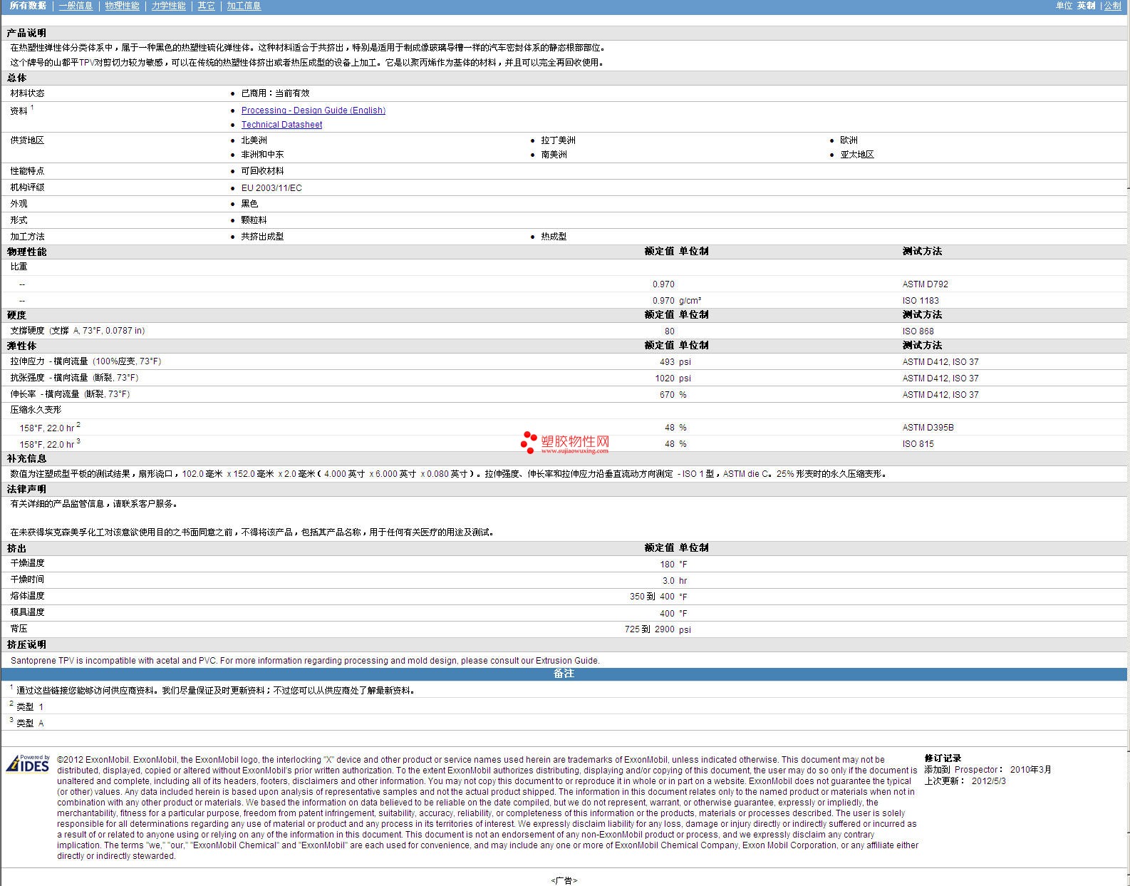 更多Santoprene AES 9101-80E 物性表报价,图片、材质证明、UL黄卡、物质安全资料表(MSDS)等可来电咨询赵先生:13424755533或QQ: 27660005