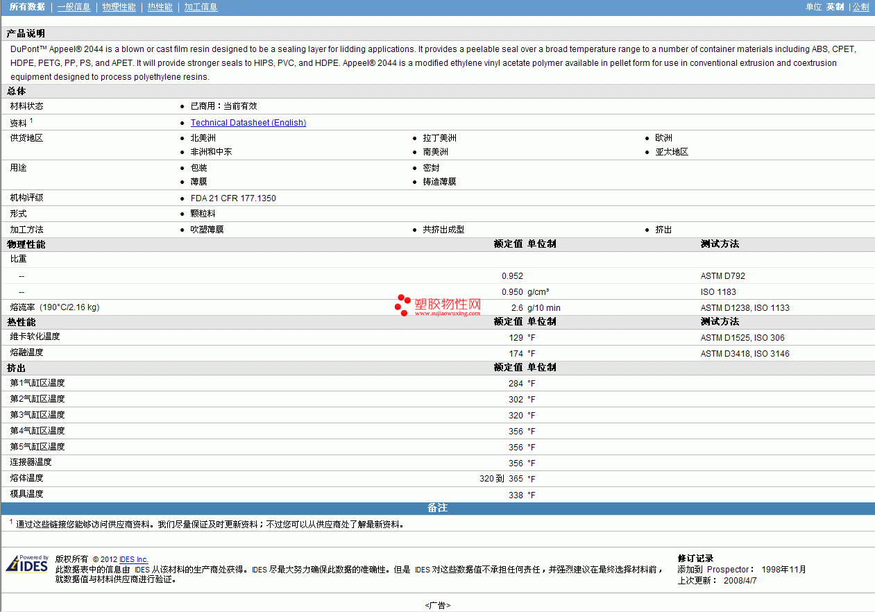更多Appeel APPEEL 2044 物性表报价,图片、材质证明、UL黄卡、物质安全资料表(MSDS)等可来电咨询赵先生:13424755533 或QQ:27660005