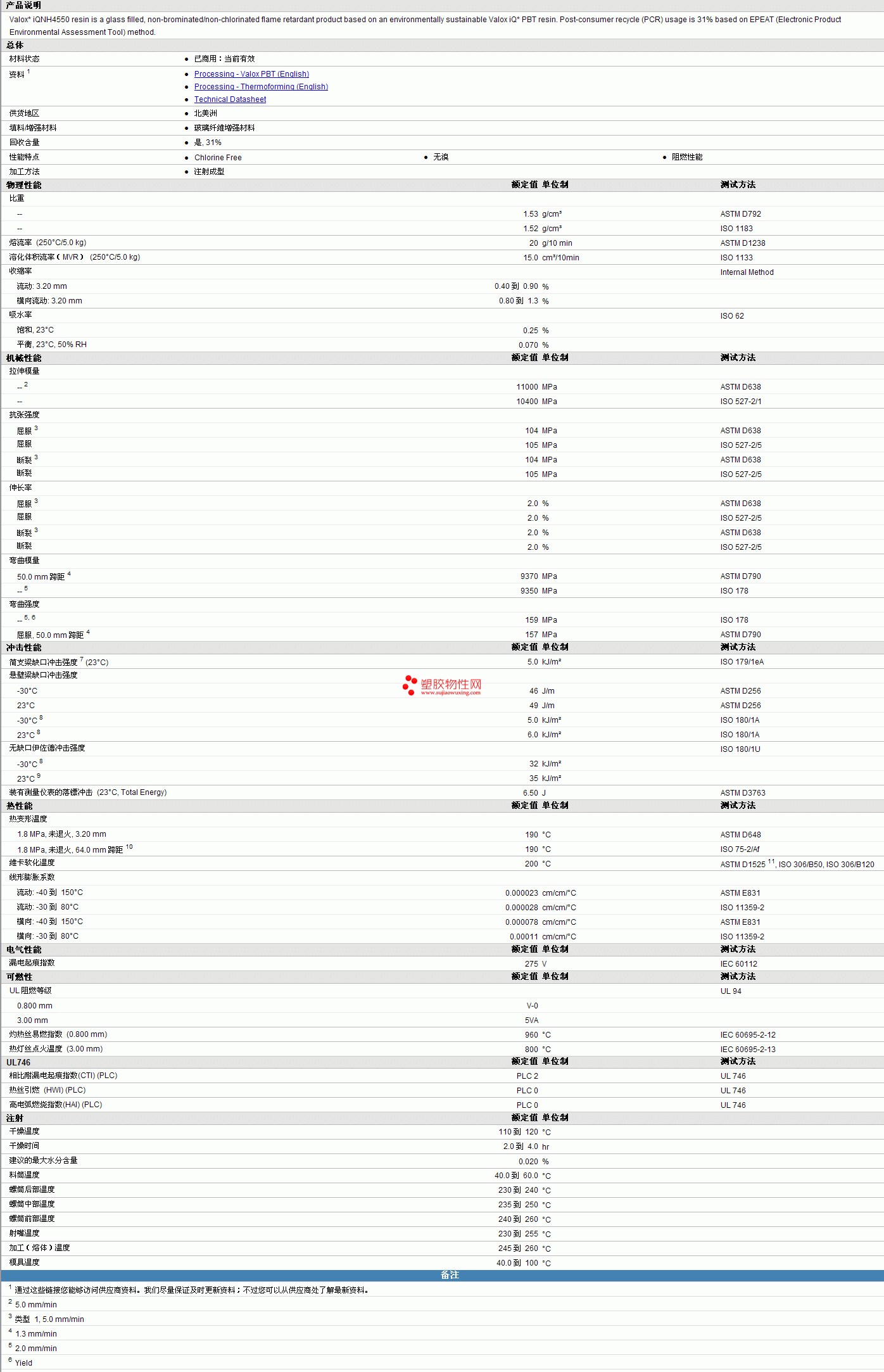 VALOX pbt IQNH4550 Resin物性表 见图片
