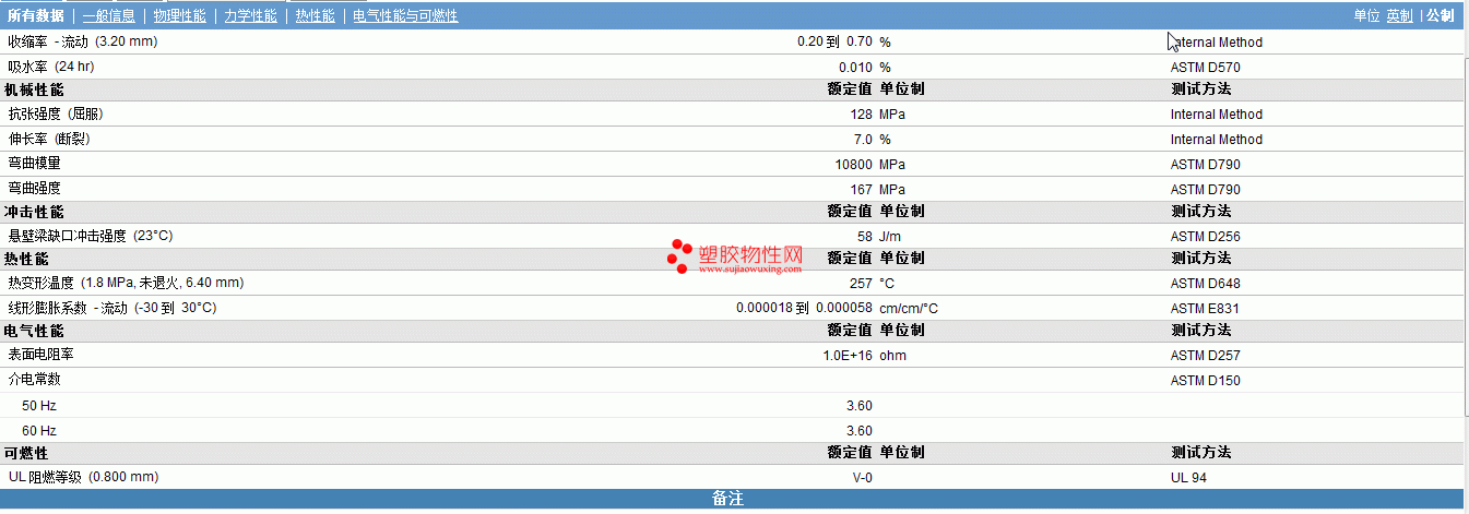 | 机械性能 | 额定值 | 单位制 | 测试方法 |