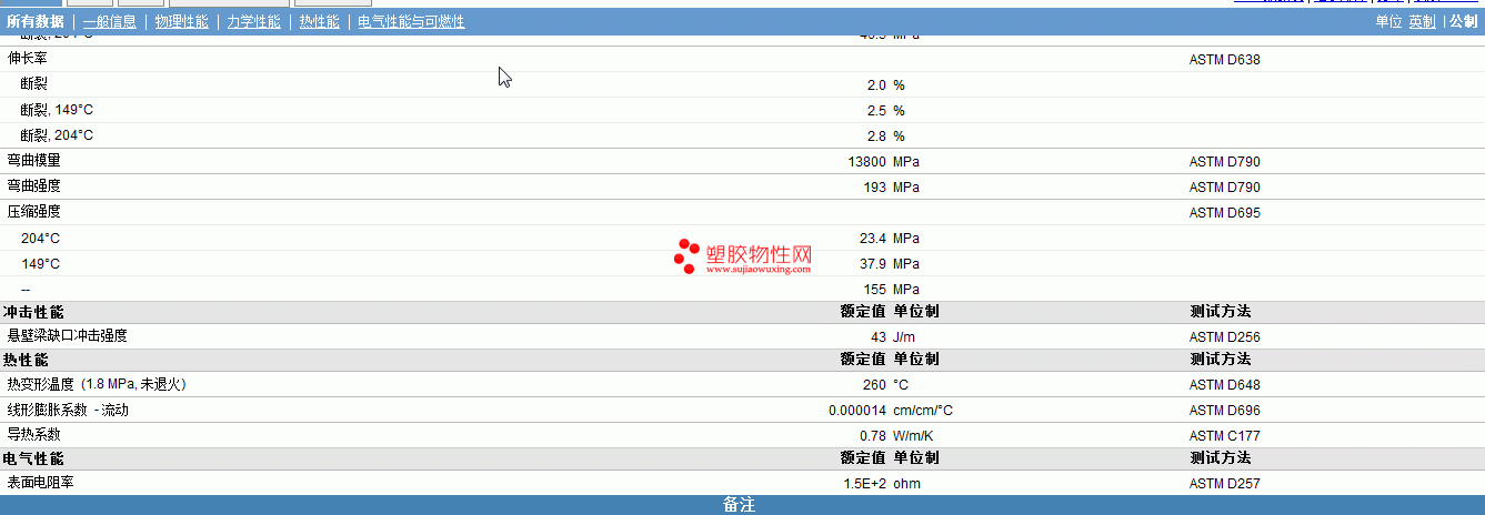 | 机械性能 | 额定值 | 单位制 | 测试方法 |