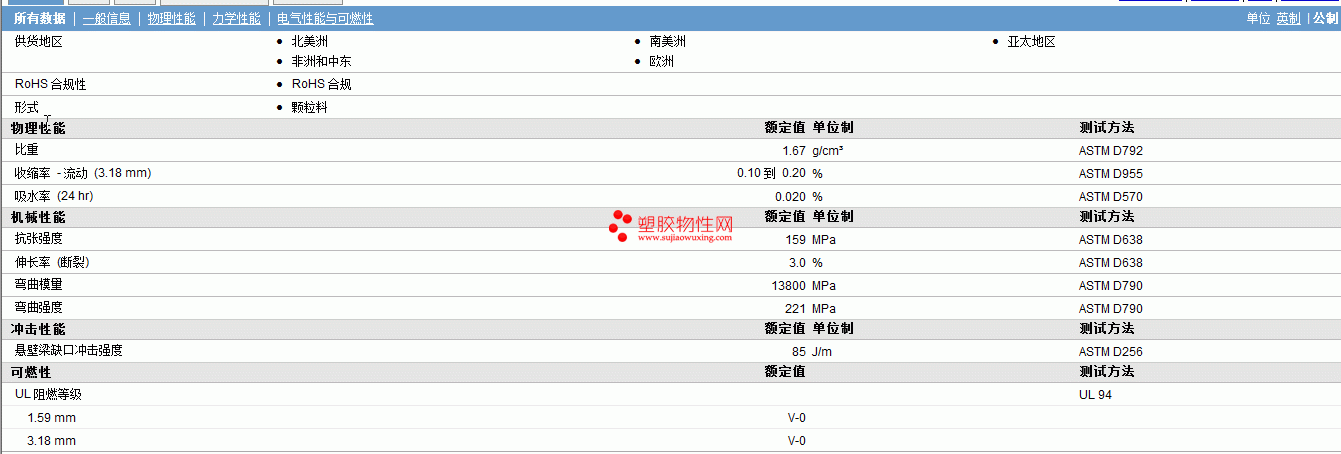 | 机械性能 | 额定值 | 单位制 | 测试方法 |