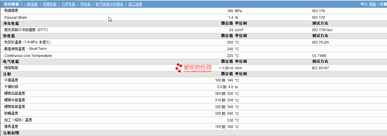 | 机械性能 | 额定值 | 单位制 | 测试方法 |