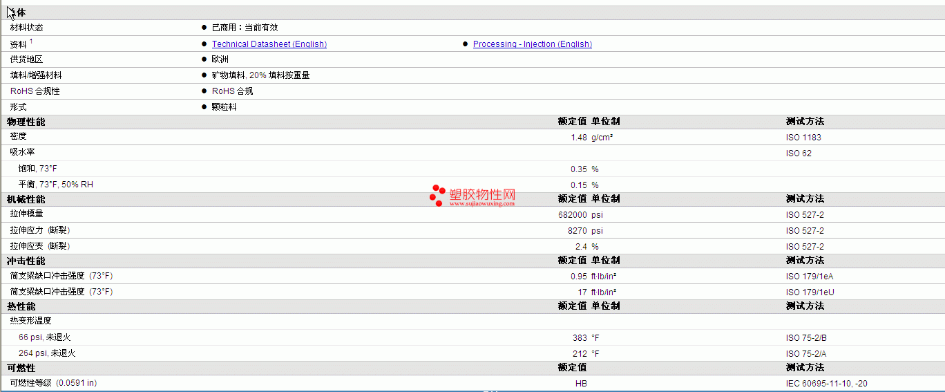 其他工程塑料物性表