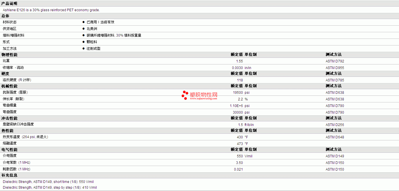 | 弯曲强度 | 30000 | psi | ASTM D790 |