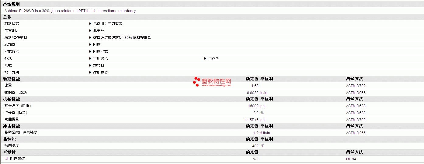 需了解ASHLENE PET E126WO 物性表更多详情,材质证明、ROHS(SGS)报告、物质安全资料表(MSDS)、UL黄卡等,最新行情报价等可来电咨询:赵先生:13424755533。或QQ:27660005