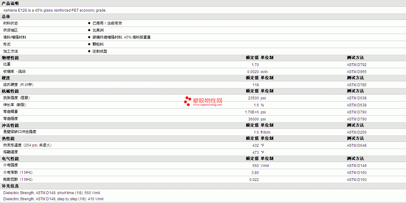 | 抗张强度 (屈服) | 23500 | psi | ASTM D638 |