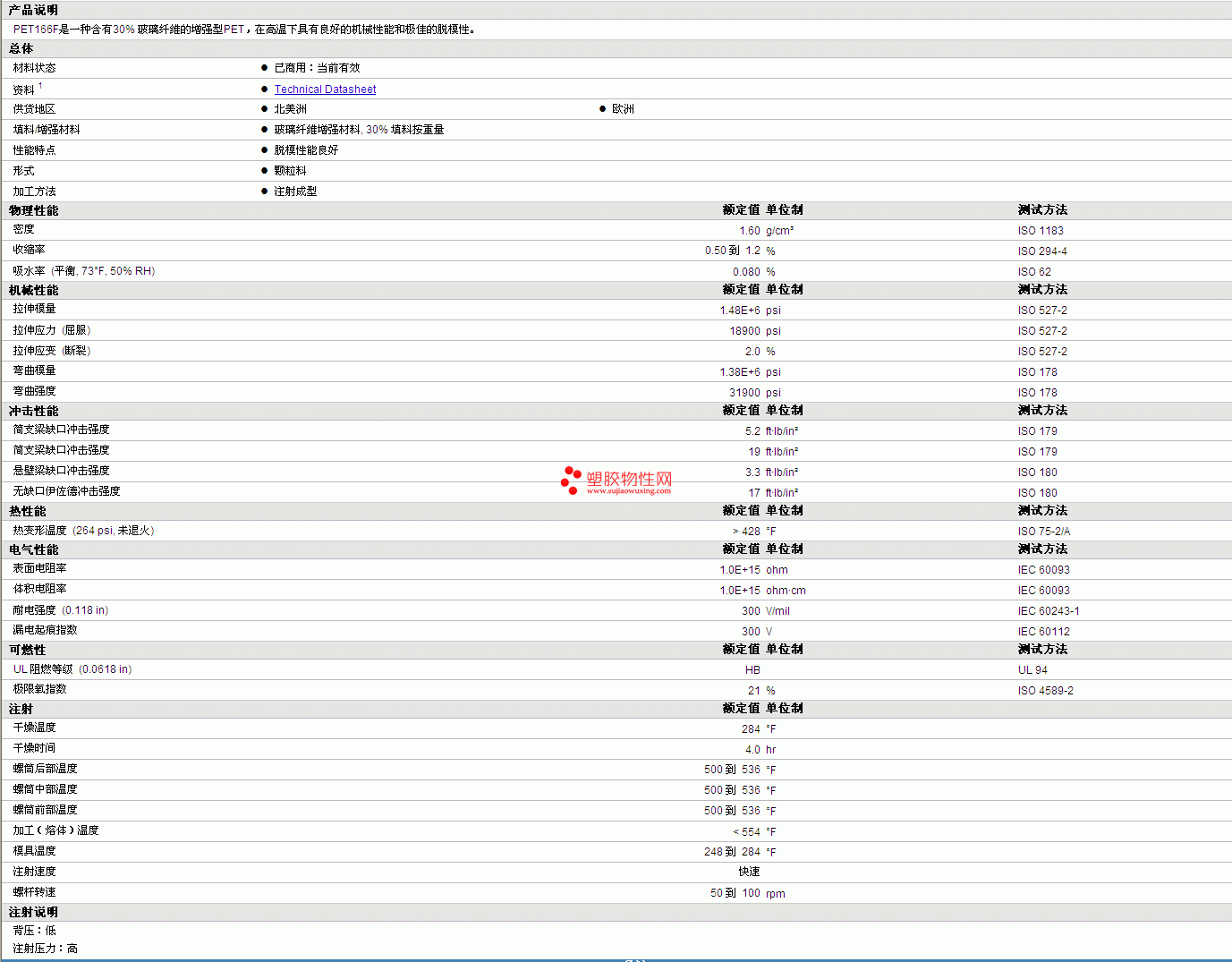 | 拉伸模量 | 1.48E+6 | psi | ISO 527-2 |