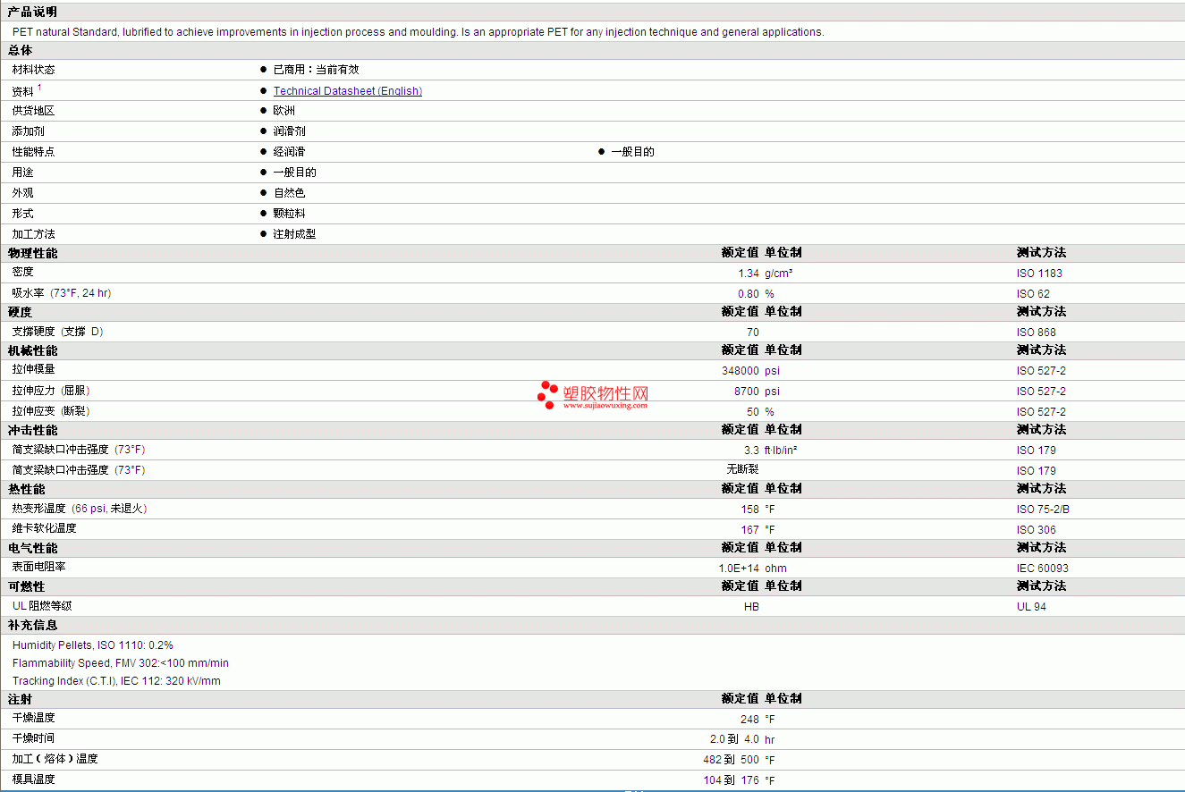 | 拉伸模量 | 348000 | psi | ISO 527-2 |