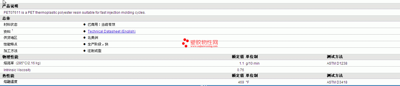 更多Chemical Resources PET07611物性表报价,图片、材质证明、UL黄卡、物质安全资料表(MSDS)等可来电咨询赵先生:13424755533。或QQ:27660005