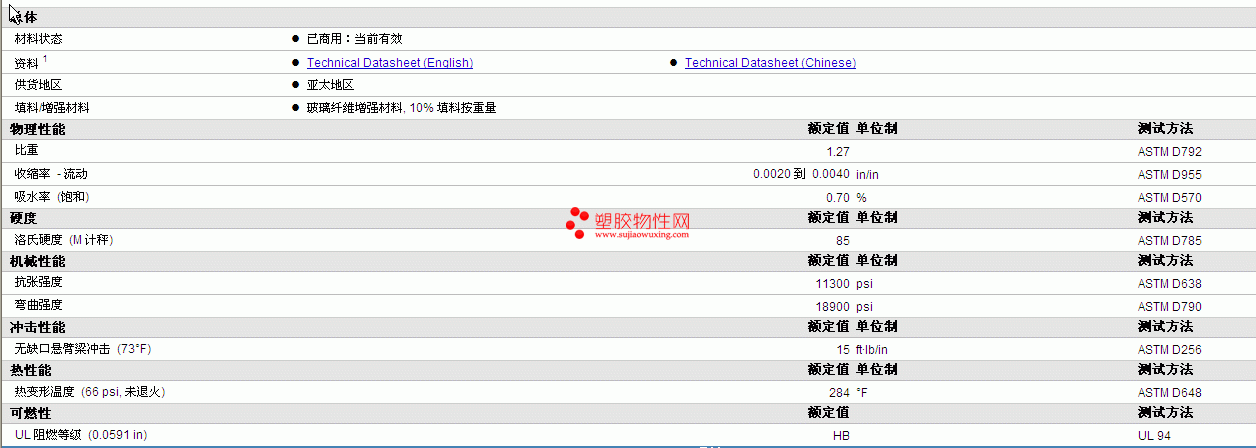 | 机械性能 | 额定值 | 单位制 | 测试方法 |