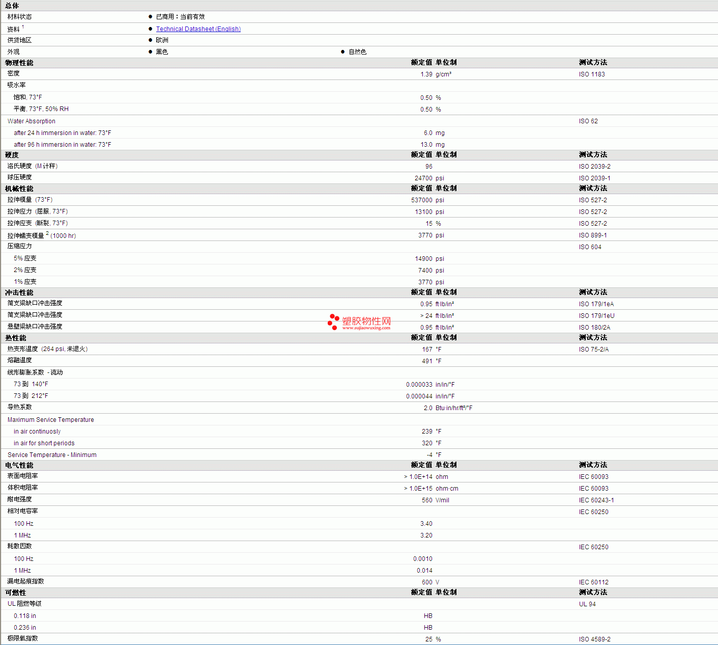 其他工程塑料物性表