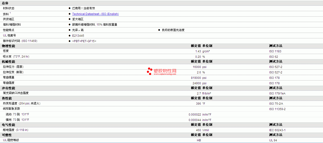 | 弯曲模量 | 819000 | psi | ISO 178 |