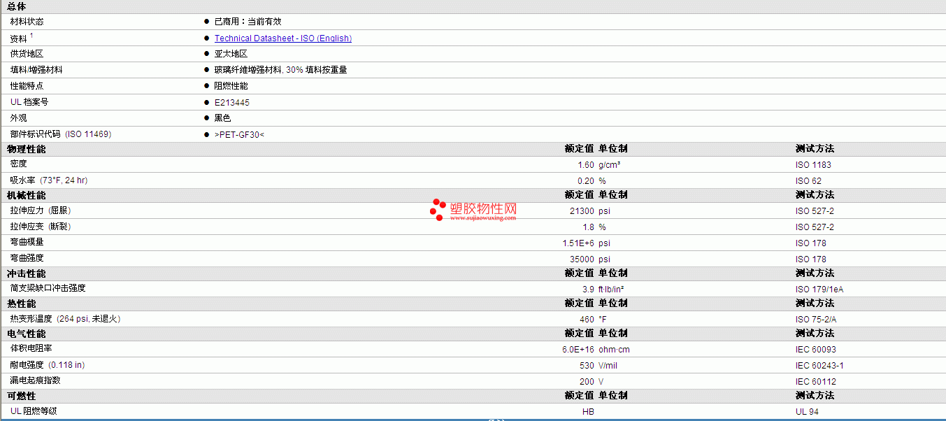 FR-PET PET B3030FA 物性表 详情见附件
