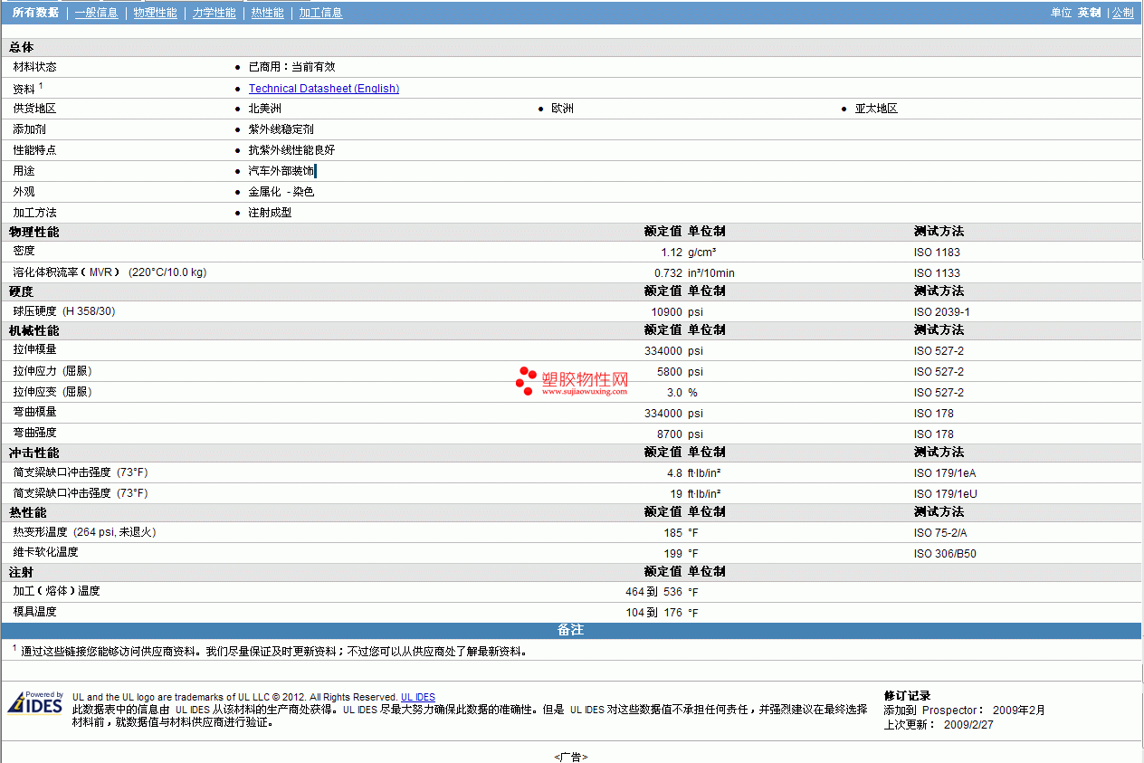 ALCOM ASA 540/8 UV SV1034-04 MCF 物性表