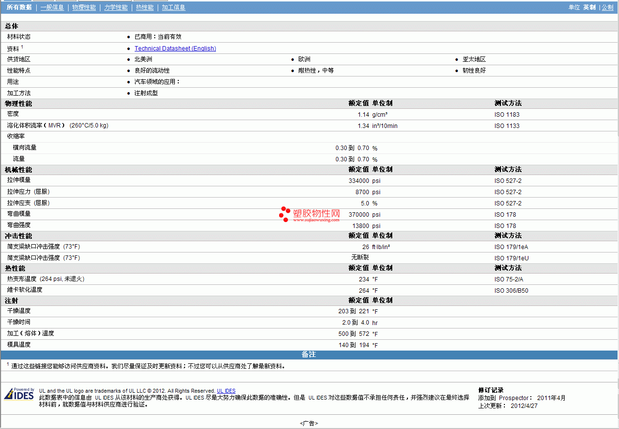 更多ALTECH PC ASA A 1000/527 UV 物性表报价,图片、材质证明、UL黄卡、物质安全资料表(MSDS)等可来电咨询赵先生:13424755533 或QQ:27660005