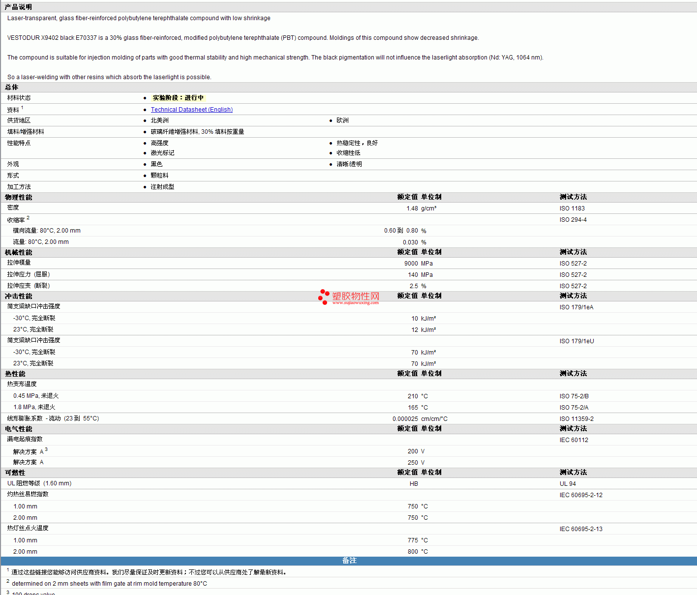 VESTODUR pbt X9402 black E70337物性表 见图片