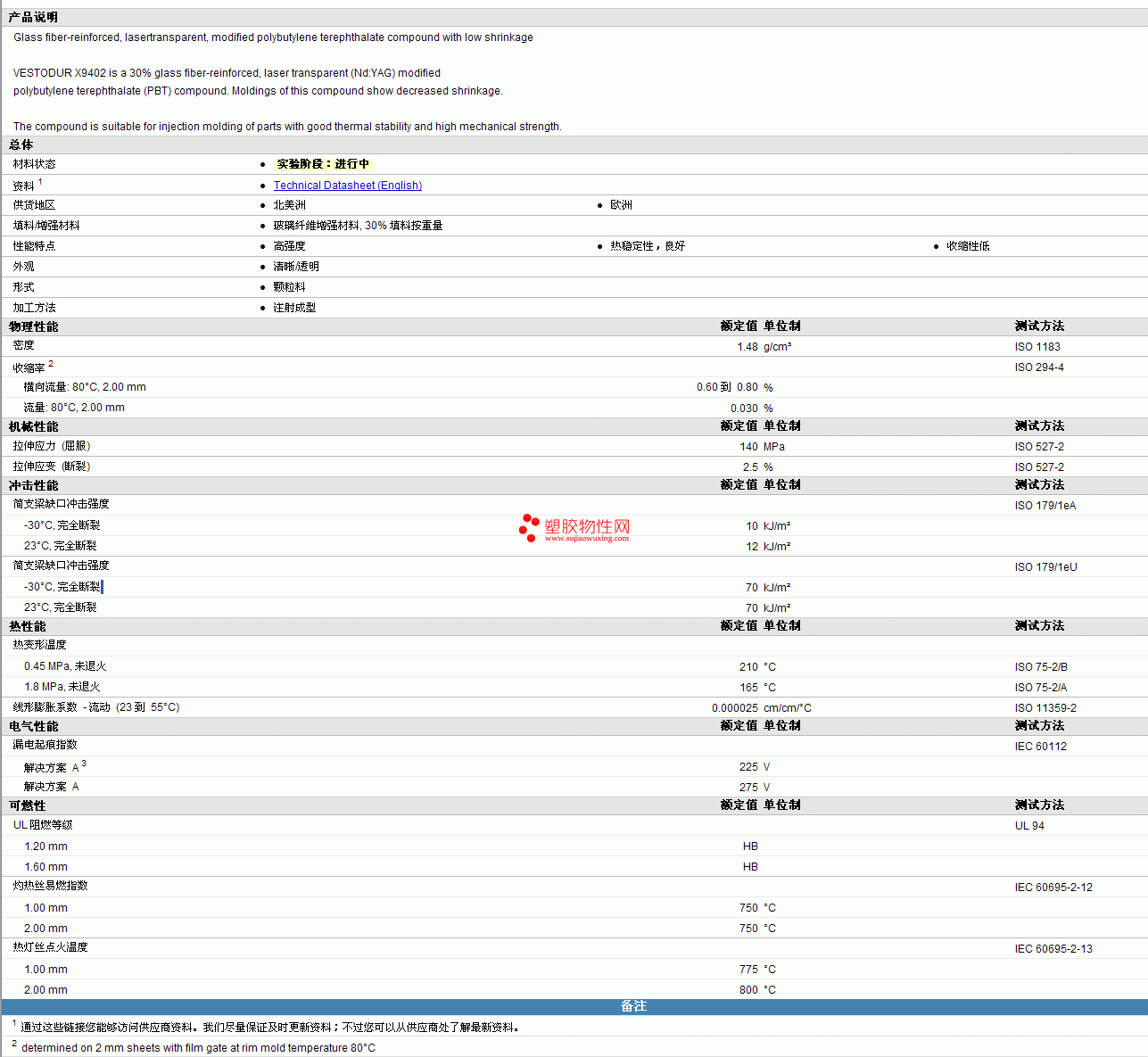 VESTODUR pbt X9402物性表 见图片