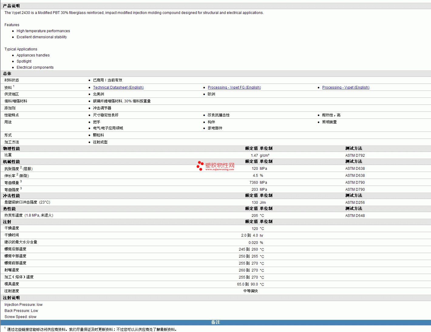 VYPET PBT 2430物性表见图片