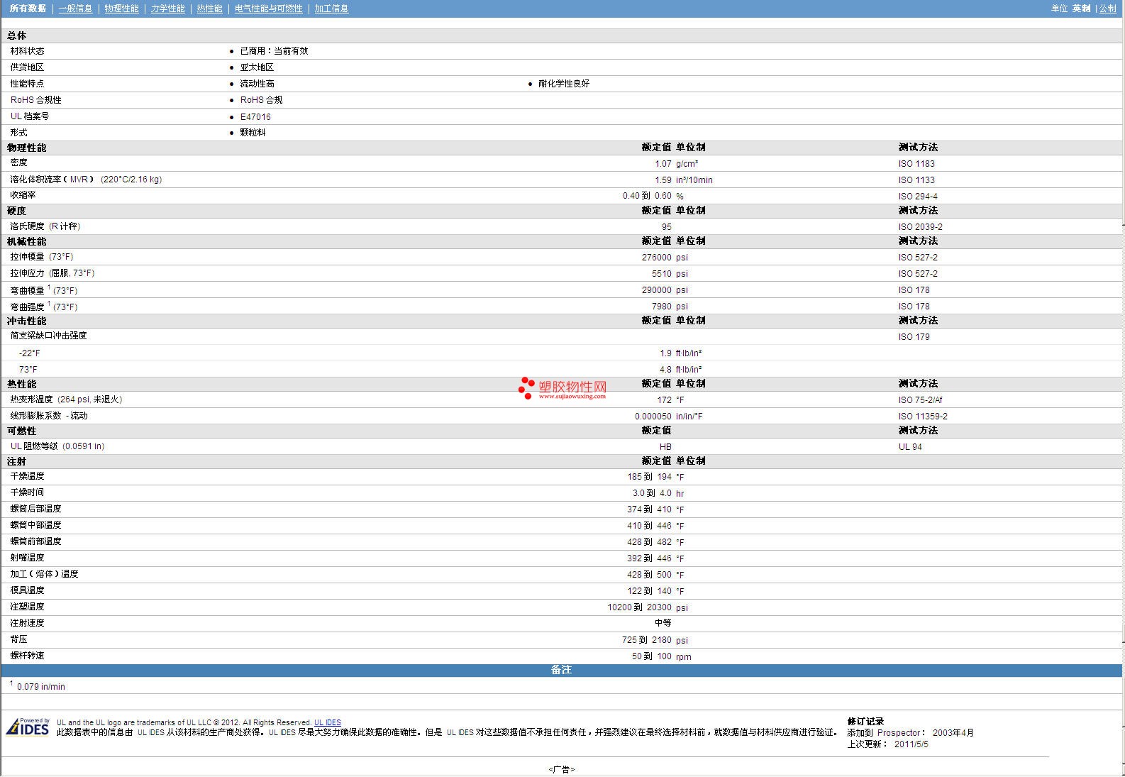 High Impact Polystyrene (HIPS) HIPS 700 UL黄卡
