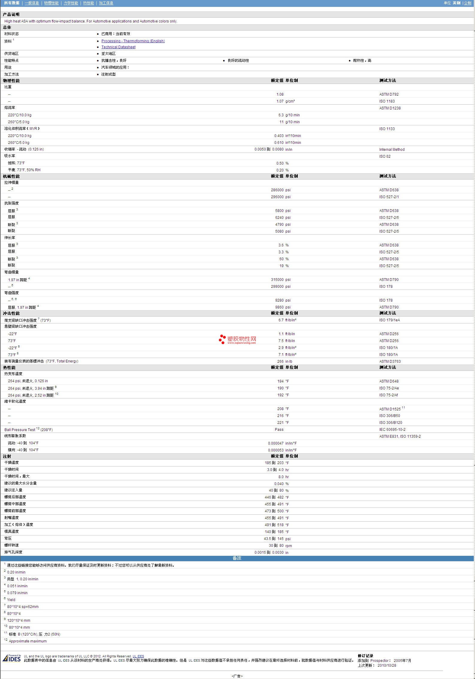 Acrylonitrile Butadiene Styrene (ABS) 190(L) UL黄卡