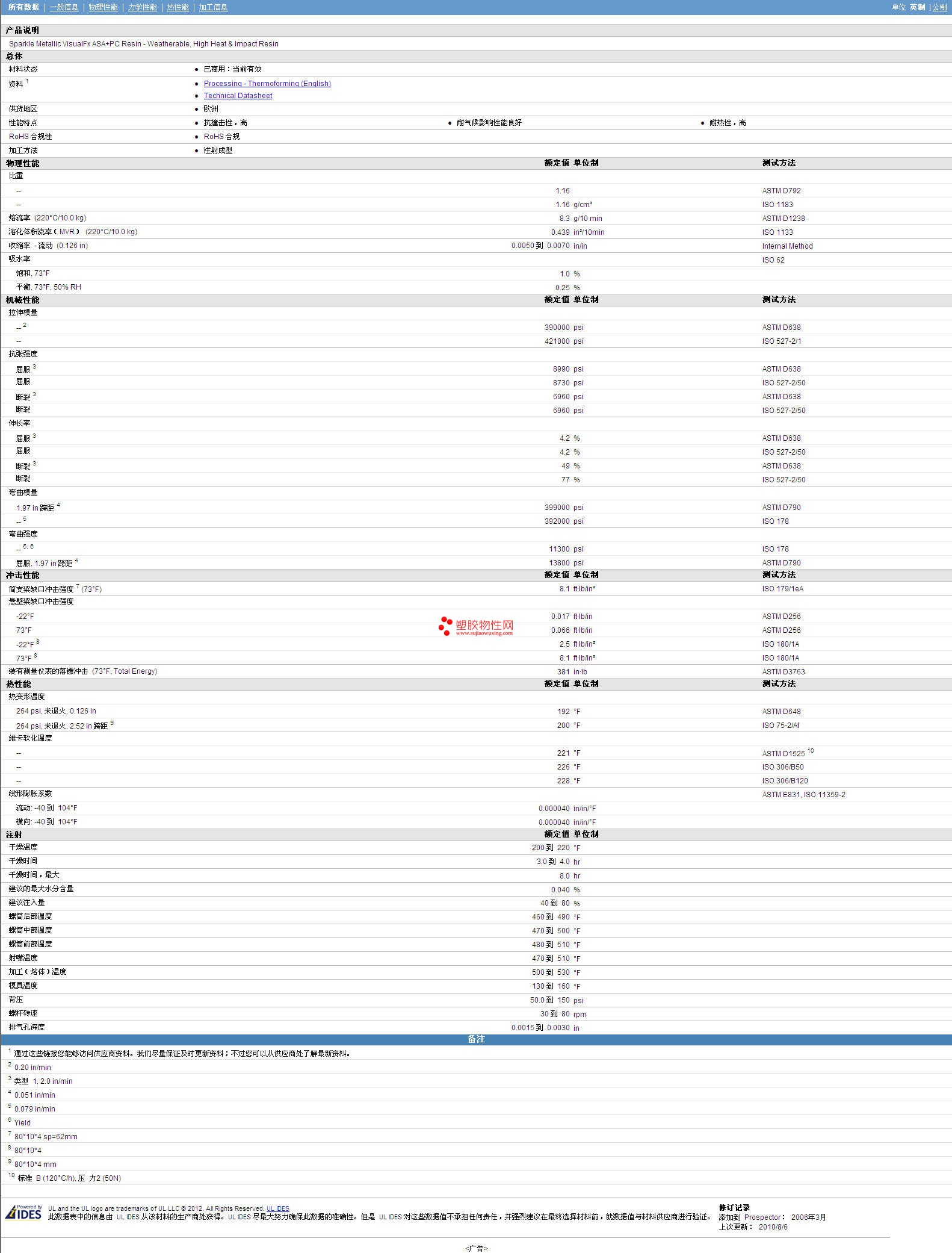 其他工程塑料物性表