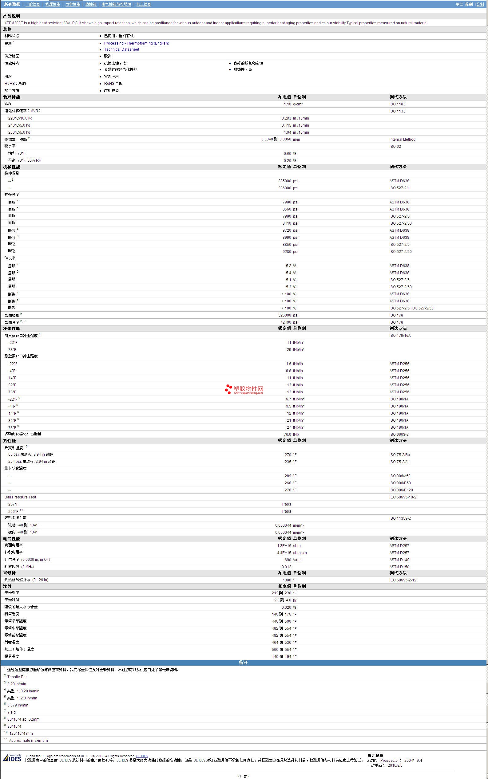 其他工程塑料物性表