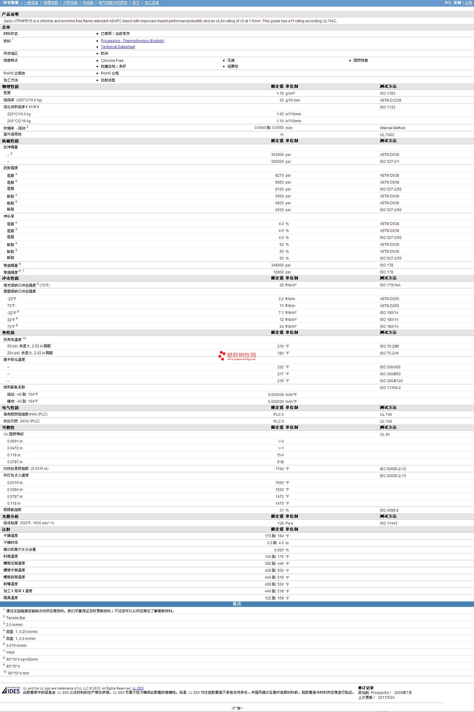 其他工程塑料物性表